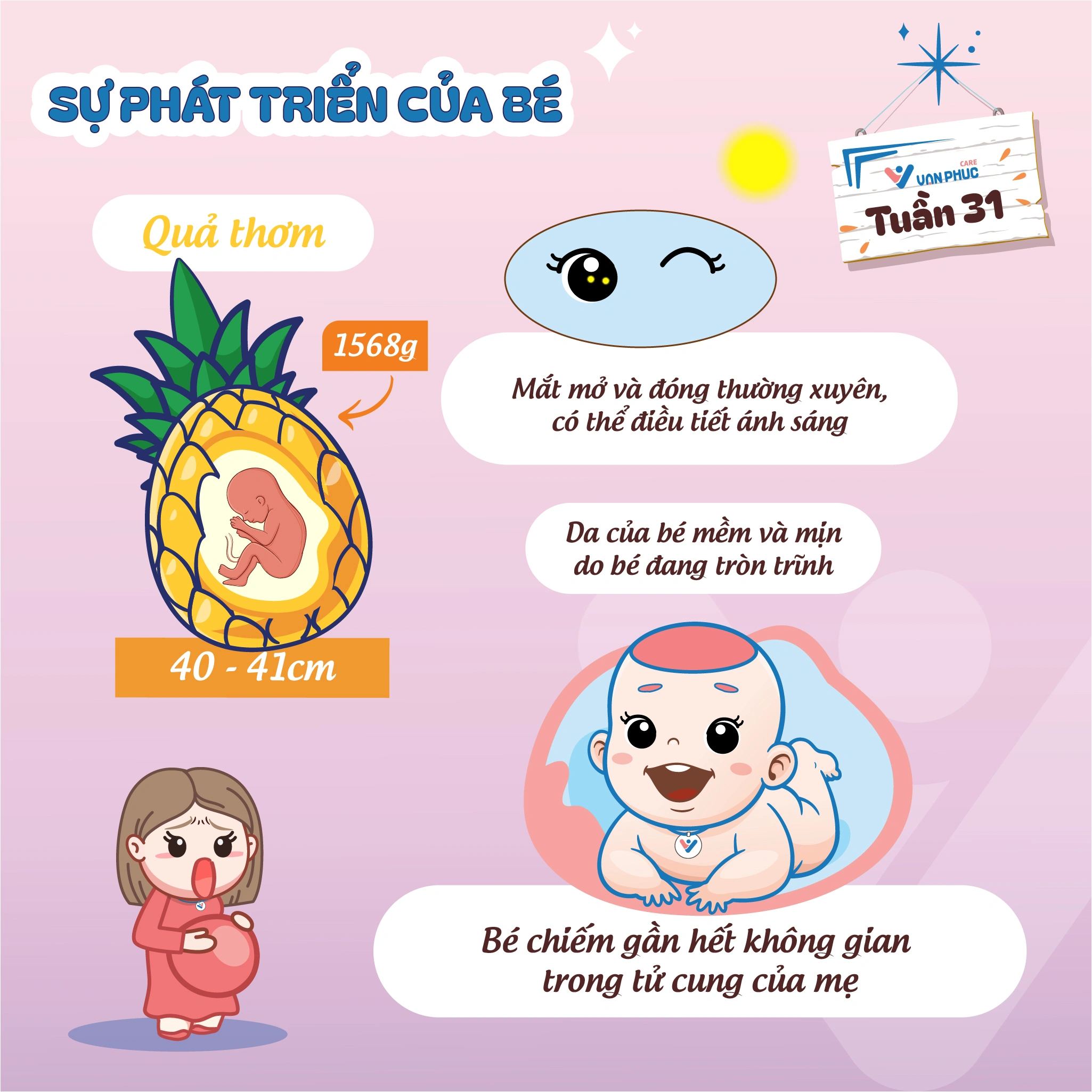 Mỗi ngày trôi qua, quá trình phát triển của thai nhi không khỏi khiến mẹ bầu chờ mong. Infographic dưới đây sẽ giúp cha mẹ tổng hợp nhanh sự phát triển diệu kỳ của thai nhi tại tuần thai thứ 31.