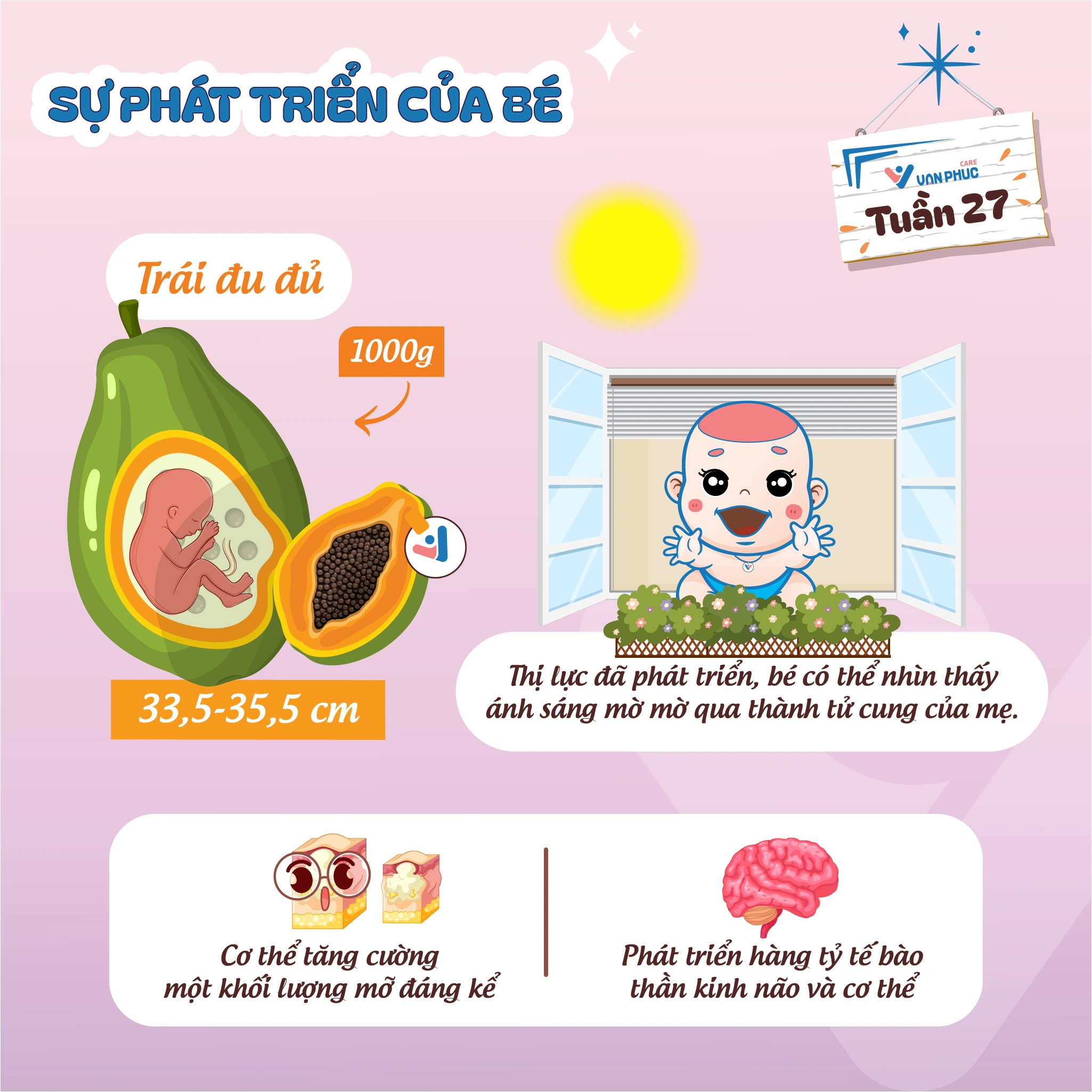 Tại thời điểm tuần thứ 27 thai kỳ, bé cưng của cha mẹ đã đạt: